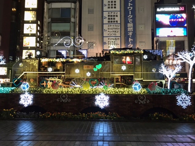 今年も11月第2週目から始まってます。 今年のテーマは、「エールを運ぶ新橋SL機関車」です。 猛威をふるう新型コロナの止まらぬ勢いに、 負けじと戦う医療従事者の方たちへの感謝の気持ちと, 応援エールの声を込めてのライトアップです。 LIGHT IT BLUE キャンペーンへの賛同もあり、 色は青をベースにしたバリエーションとのこと。