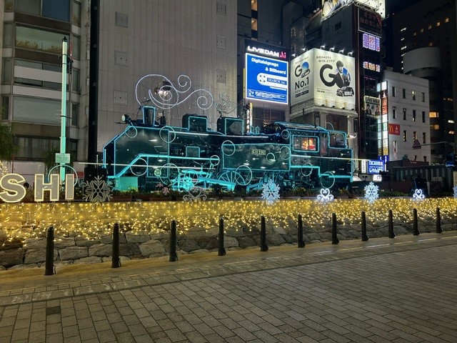 12月に入り、街はいたるところでイルミネーションが華やかに輝いています。 わが町、新橋でも恒例にイルミネーション開催中です。 駅前、SL広場。SL機関車を装飾する新橋イルミネーション。 テーマは「ひかりのFantasia!」。 光と音に包まれてhappyになる今年のパワーイルミネーション。