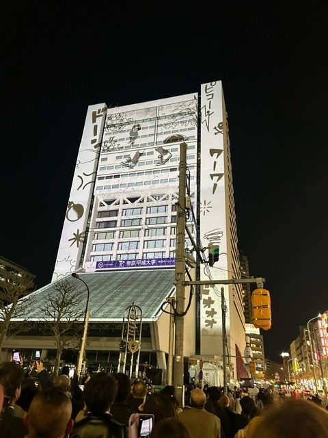 ということで、サンプラザの外壁に今までの思い出を映すプロジェクションマッピング