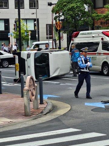 奇跡的に誰もケガはなく、車だけが道路に寝転がっておりました(苦笑)