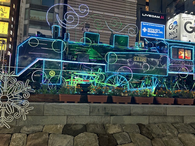 新橋イルミネーションです。今年は11/14からSL広場で開催開始しています。