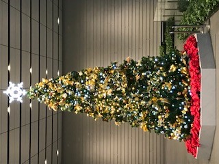オフィスビルの受付前には、さすがの大きさのクリスマスツリーが飾られ、