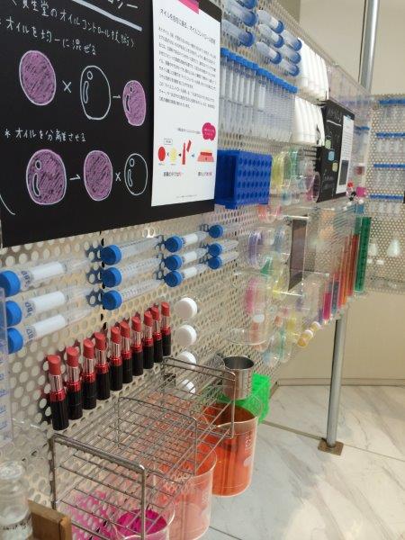 展示物の傍には、資生堂リサーチセンターの社員の方がおられ、