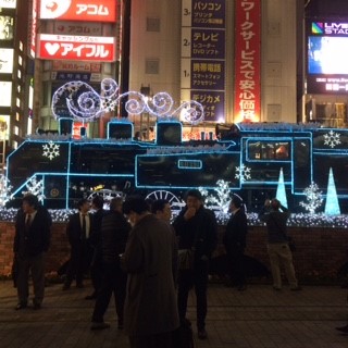 新橋SL広場の機関車イルミネーションは、来年1月までやっています!