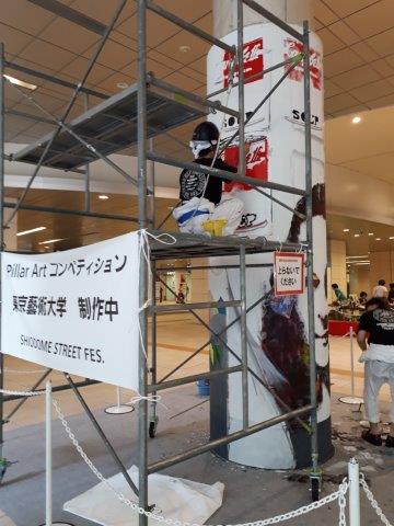 東京都内の美大生が汐留の公共地下道にある柱を